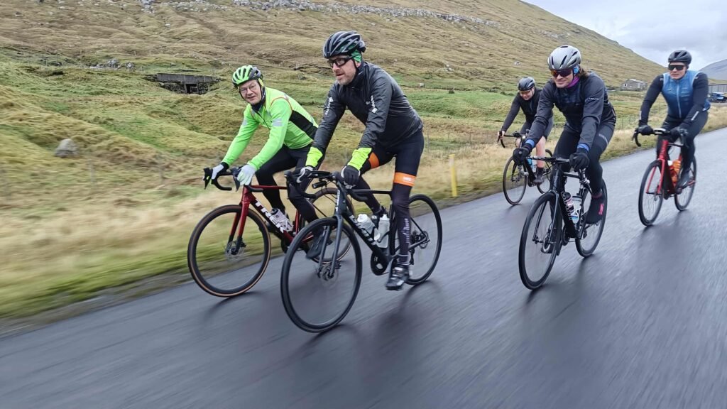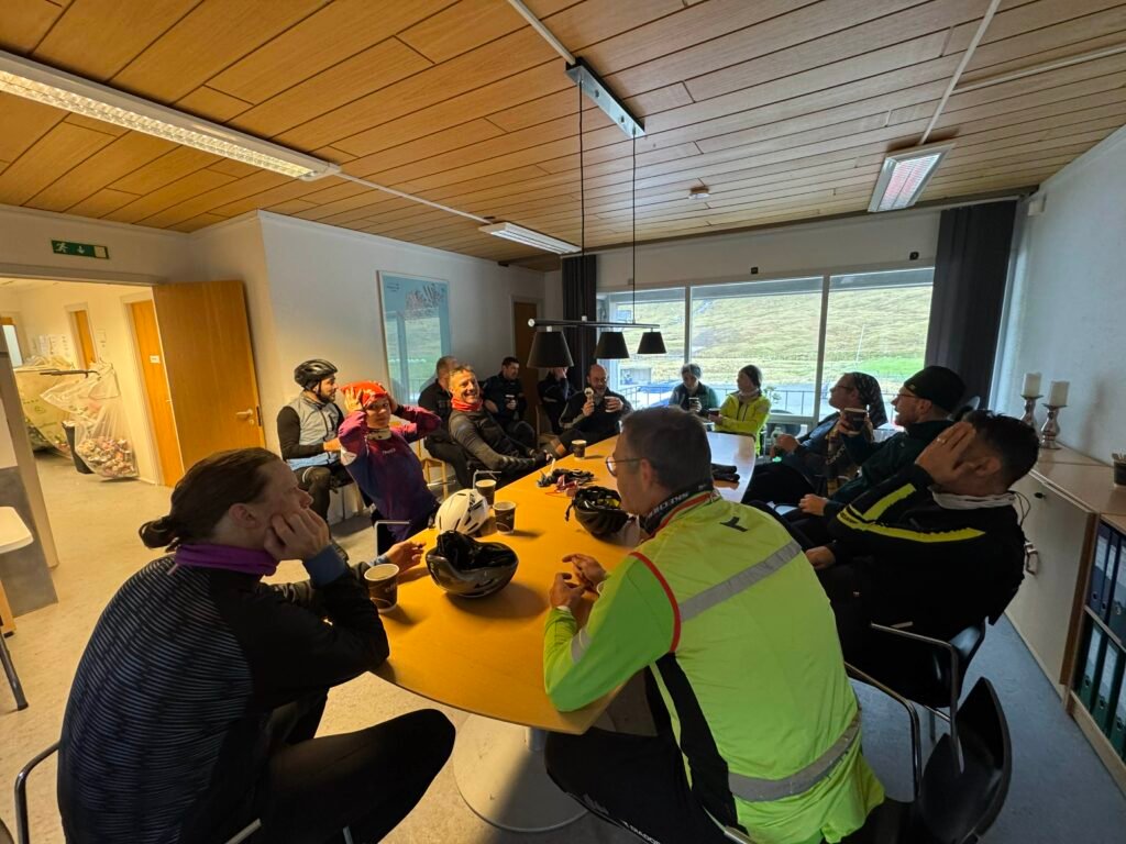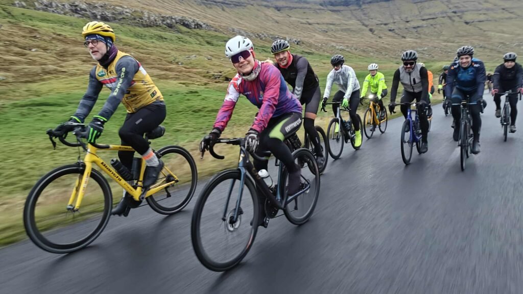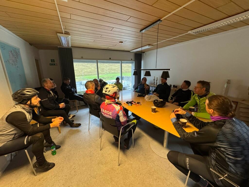 Tað var væl blandað við fólki í morgun. Dentur varð lagdur á, at tað var ein felagstúrur. Tey sum súkkla kenna til teir nógvu tímarnar á súkkluni, og ofta í einsemi. Tí er týdningarmikið at minnast til at hava góðan felagsskap.